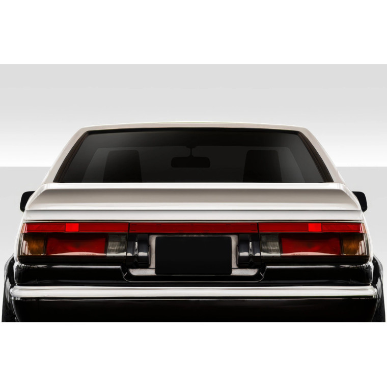 Presenting the HBD1 Sport Rear Wing Spoiler for the 1984-1987 Toyota Corolla, a top-tier enhancement from Duraflex thats designed to elevate both the aesthetics and potential performance of your vehicle. This Wings is meticulously crafted to complement the aerodynamic lines of your car, delivering a sleek, aggressive look that highlights the Toyota Corolla's bold design.