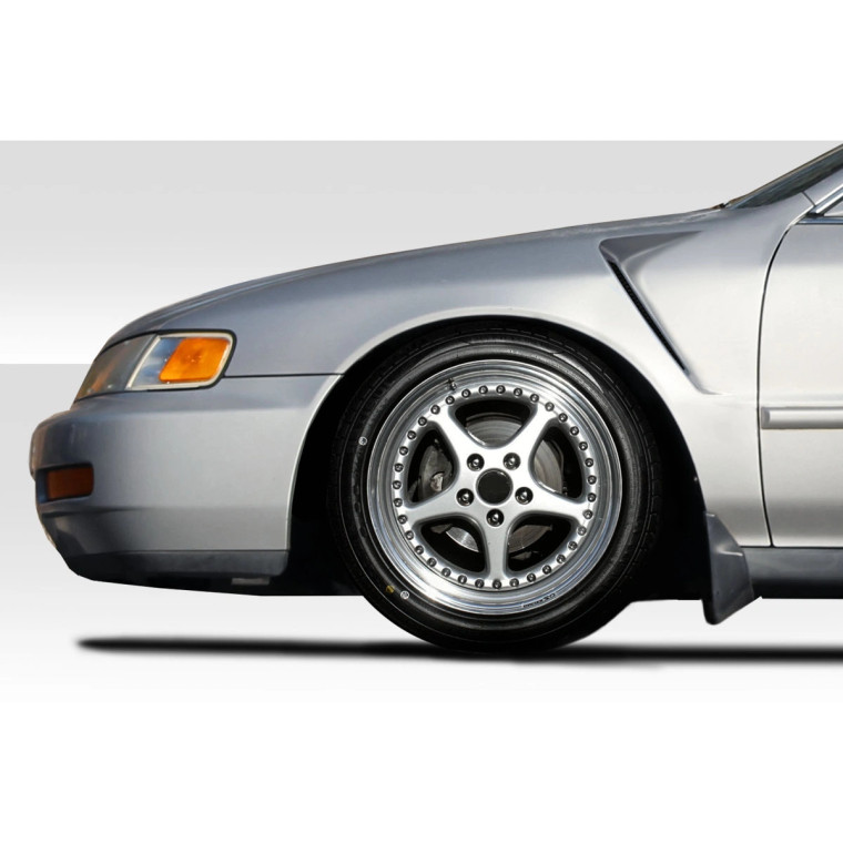 Enhance the style and performance of your 1994-1997 Honda Accord with the 4 cyl F-1 Fenders from Duraflex, a premium accessory crafted to elevate the look and aerodynamics of your vehicle. This Fenders is expertly engineered to complement your vehicle's aerodynamic profile, potentially improving downforce and stability at higher speeds.