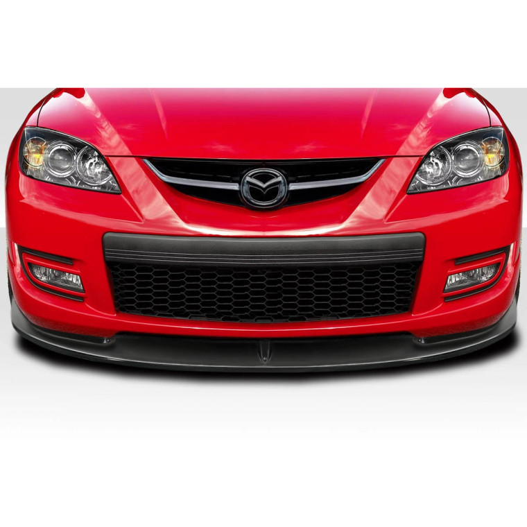 Presenting the speedSpeedZone Front Lip Spoiler Air Dam for the 2007-2009 Mazda 3, a top-tier enhancement from Duraflex thats designed to elevate both the aesthetics and potential performance of your vehicle. This Front Lips is meticulously crafted to complement the aerodynamic lines of your car, delivering a sleek, aggressive look that highlights the Mazda 3's bold design.