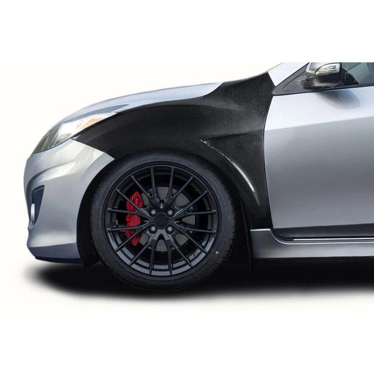 Crafted from Carbon Fiber, the Evolved Front Fenderss helps maintain the agile and responsive nature of your Mazda 3. Please note that the hardware required for installation is not included, so you may need to use custom or factory hardware like screws, bolts, and possibly brackets for a proper fit.