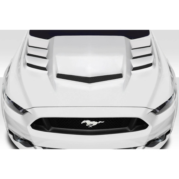 Enhance the look of your 2015-2017 Ford Mustang with the Interceptor Hood from Duraflex, designed to offer both striking visual appeal and improved aerodynamics. This Hoods is meticulously crafted to enhance not only the aesthetic of your vehicle but also its aerodynamic efficiency, depending on the design.