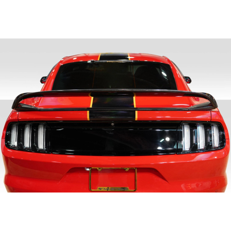Presenting the Coupe GT350 Look Wing for the 2015-2023 Ford Mustang, a top-tier enhancement from Carbon Creations thats designed to elevate both the aesthetics and potential performance of your vehicle. This Wings is meticulously crafted to complement the aerodynamic lines of your car, delivering a sleek, aggressive look that highlights the Ford Mustang's bold design.