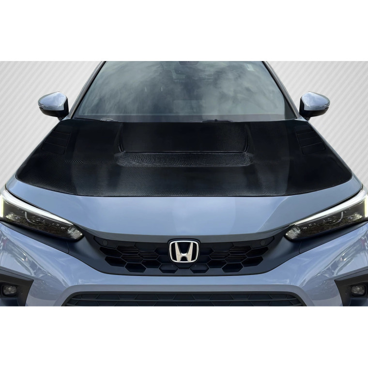Upgrade the appearance and performance of your 2022-2025 Honda Civic with the Suzuka Hood from Carbon Creations. This accessory is designed to enhance both the aesthetics and potentially improve the functionality of your vehicle. The Hoods is engineered to work harmoniously with your cars aerodynamic design, crafted from premium Carbon Fiber materials, offering a bold, aggressive look that accentuates the sleek lines of your Honda Civic.