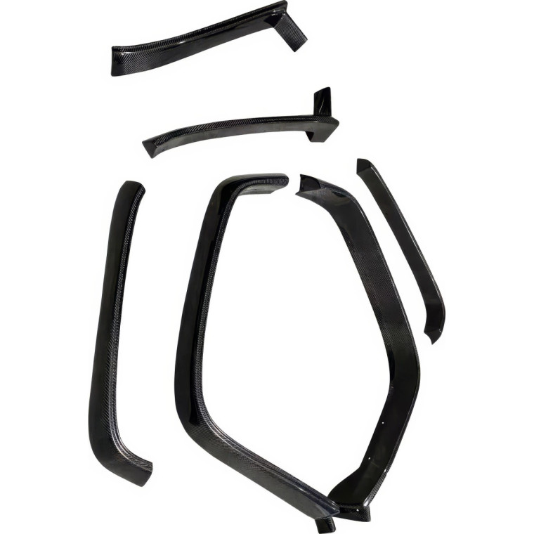 This is a BNW Fender Flares Set manufactured or distributed by ModeloDrive with Carbon Fiber being the primary exterior surface material. Most carbon fiber parts we sell are "wet" carbon fiber, this means they have that "wet" glossy look, the only exception to this is then the product specifically states "dry". Dry carbon is usually lighter than wet carbon but has a dull flat finish. When installing ModeloDrive Carbon Fiber parts make sure you are using hood pins on hoods and do not use hydraulic arms to prop open hoods and trunks as they can warp the light weight components over time. ModeloDrive Carbon fiber parts may require modifications such as: Drilling of holes / cutting / sanding / fixing cracks / buffing to eliminate scratches, etc. Ships direct from the manufacturer or a distributor. Manufactured with a marine gelcoat variant to help prolong the life against UV aging effects. Our Carbon Fiber parts are made with handlaid wetcarbon with plastic resin. Genuine show quality carbon reinforced with FRP fiberglass backing. Aeroparts are to be installed by a professional body shop. Bolts, screws, and double sided tape is not included. Carbon Fiber parts often have a fiberglass underside which may require modification, shaving, sanding, drilling, filling in order to ensure proper fitment.