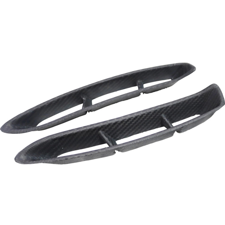 This is a GT3-XL Fender Vents (front) 2pc manufactured or distributed by ModeloDrive with Carbon Fiber being the primary exterior surface material. Most carbon fiber parts we sell are "wet" carbon fiber, this means they have that "wet" glossy look, the only exception to this is then the product specifically states "dry". Dry carbon is usually lighter than wet carbon but has a dull flat finish. When installing ModeloDrive Carbon Fiber parts make sure you are using hood pins on hoods and do not use hydraulic arms to prop open hoods and trunks as they can warp the light weight components over time. ModeloDrive Carbon fiber parts may require modifications such as: Drilling of holes / cutting / sanding / fixing cracks / buffing to eliminate scratches, etc. Ships direct from the manufacturer or a distributor. Manufactured with a marine gelcoat variant to help prolong the life against UV aging effects. Our Carbon Fiber parts are made with handlaid wetcarbon with plastic resin. Genuine show quality carbon reinforced with FRP fiberglass backing. Aeroparts are to be installed by a professional body shop. Bolts, screws, and double sided tape is not included. Carbon Fiber parts often have a fiberglass underside which may require modification, shaving, sanding, drilling, filling in order to ensure proper fitment.