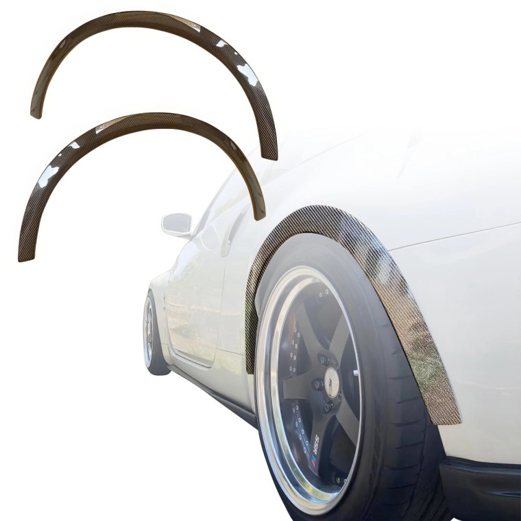 Enhance the style and performance of your 2003-2008 Nissan 350Z with the Carbon Fiber NISM Fender Flares (rear) 2pc >(Z33) from ModeloDrive. This premium Fenders is expertly designed to improve your vehicles aerodynamics while adding a bold, distinctive appearance that sets your car apart from the rest.