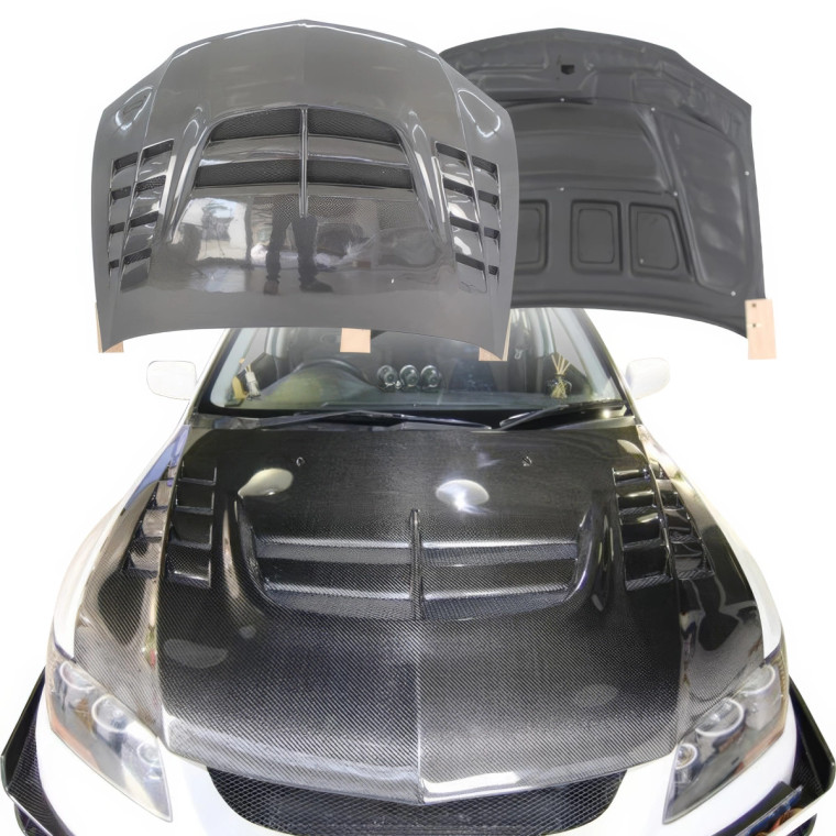 Mitsubishi HoodsEvolution HoodsModeloDrive HoodsMitsubishi Carbon Fiber HoodsEvolution Carbon Fiber Hoods