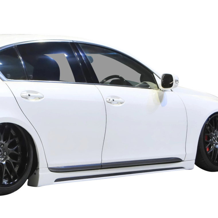 Upgrade the appearance and performance of your 2006-2011 Lexus GS300 with the FRP AIMG VP Side Skirts > from ModeloDrive. This accessory is designed to enhance both the aesthetics and potentially improve the functionality of your vehicle. The Side Skirts is engineered to work harmoniously with your cars aerodynamic design, crafted from premium FRP materials, offering a bold, aggressive look that accentuates the sleek lines of your Lexus GS300.