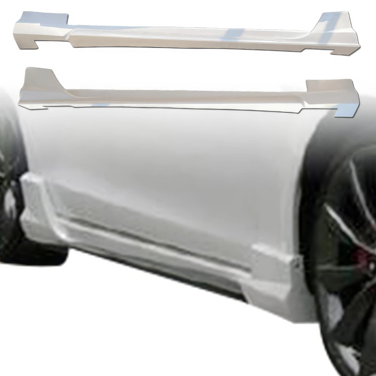The FRP KKRidekirts >Model features a customizable finish, allowing you to paint it to match your vehicles color. This provides the opportunity to personalize your car, giving it a distinct look that reflects your individual style.