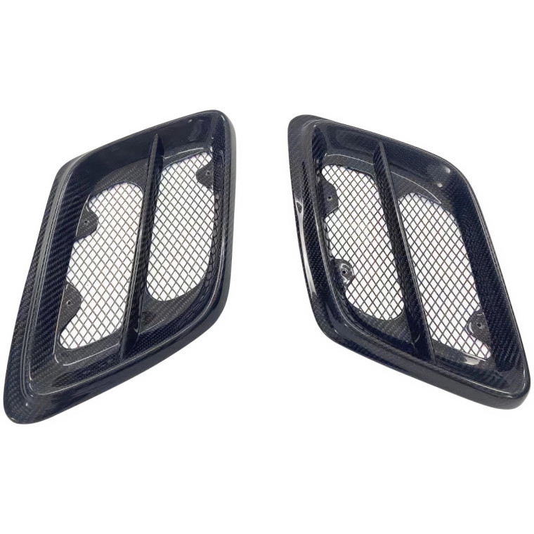 This is a WRC Side Hood Bar Vents manufactured or distributed by ModeloDrive with Carbon Fiber being the primary exterior surface material. Most carbon fiber parts we sell are "wet" carbon fiber, this means they have that "wet" glossy look, the only exception to this is then the product specifically states "dry". Dry carbon is usually lighter than wet carbon but has a dull flat finish. When installing ModeloDrive Carbon Fiber parts make sure you are using hood pins on hoods and do not use hydraulic arms to prop open hoods and trunks as they can warp the light weight components over time. ModeloDrive Carbon fiber parts may require modifications such as: Drilling of holes / cutting / sanding / fixing cracks / buffing to eliminate scratches, etc. Ships direct from the manufacturer or a distributor. Manufactured with a marine gelcoat variant to help prolong the life against UV aging effects. Our Carbon Fiber parts are made with handlaid wetcarbon with plastic resin. Genuine show quality carbon reinforced with FRP fiberglass backing. Aeroparts are to be installed by a professional body shop. Bolts, screws, and double sided tape is not included. Carbon Fiber parts often have a fiberglass underside which may require modification, shaving, sanding, drilling, filling in order to ensure proper fitment.
