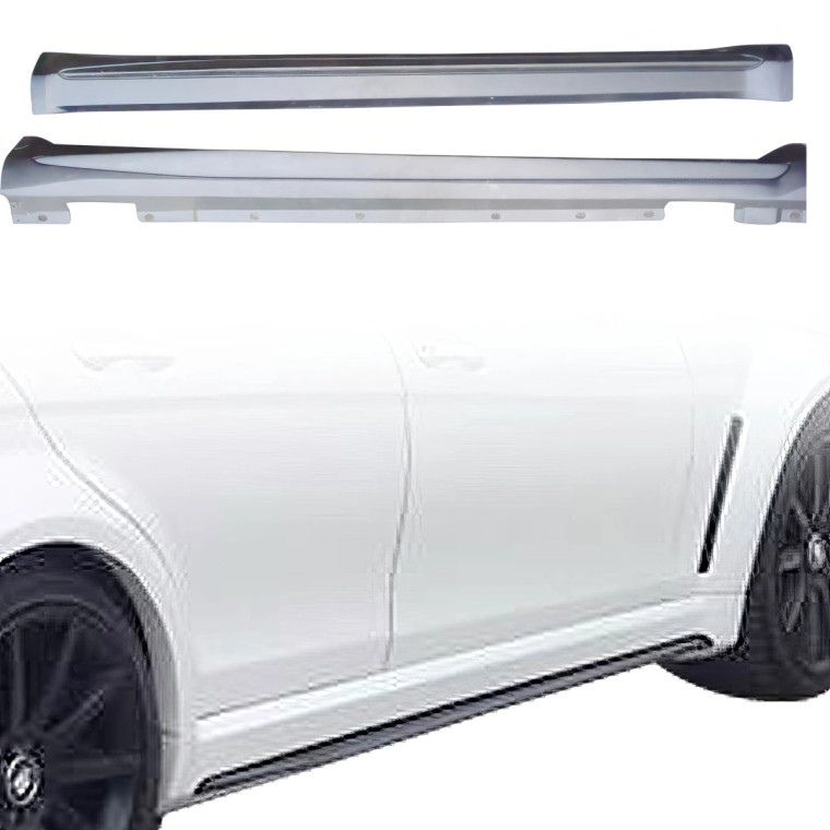 This is a PDES BSER Wide Body Side Skirts manufactured or distributed by ModeloDrive with FRP being the primary exterior surface material. ModeloDrive FRP (fiberglass) parts are high quality aero parts now available to the US market. ModeloDrive FRP aerodynamics have set a new standard for the fiberglass market. You may need to dry fit the parts and drill holes before prepping and finishing. Fiberglass may have cracks or surface imperfections that need filling and/or leveling. A professional body shop should fix any issues in the prep stage of installation and install the parts. You will need bolts, screws, and double sided tape, which are not included. All ModeloDrive fiberglass parts require modification, shaving, sanding, drilling, filling, cutting to ensure proper fitment but usually less than the competition.